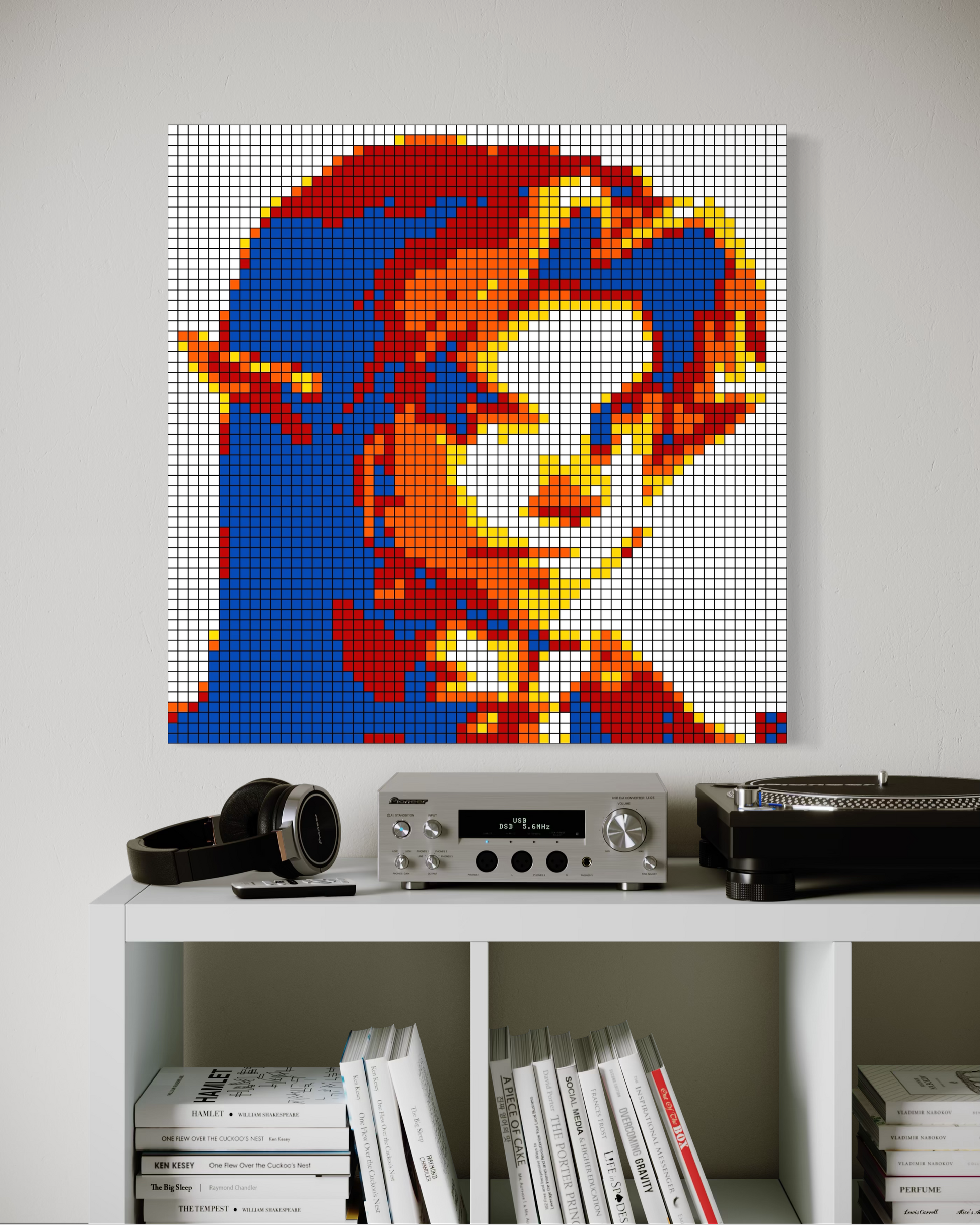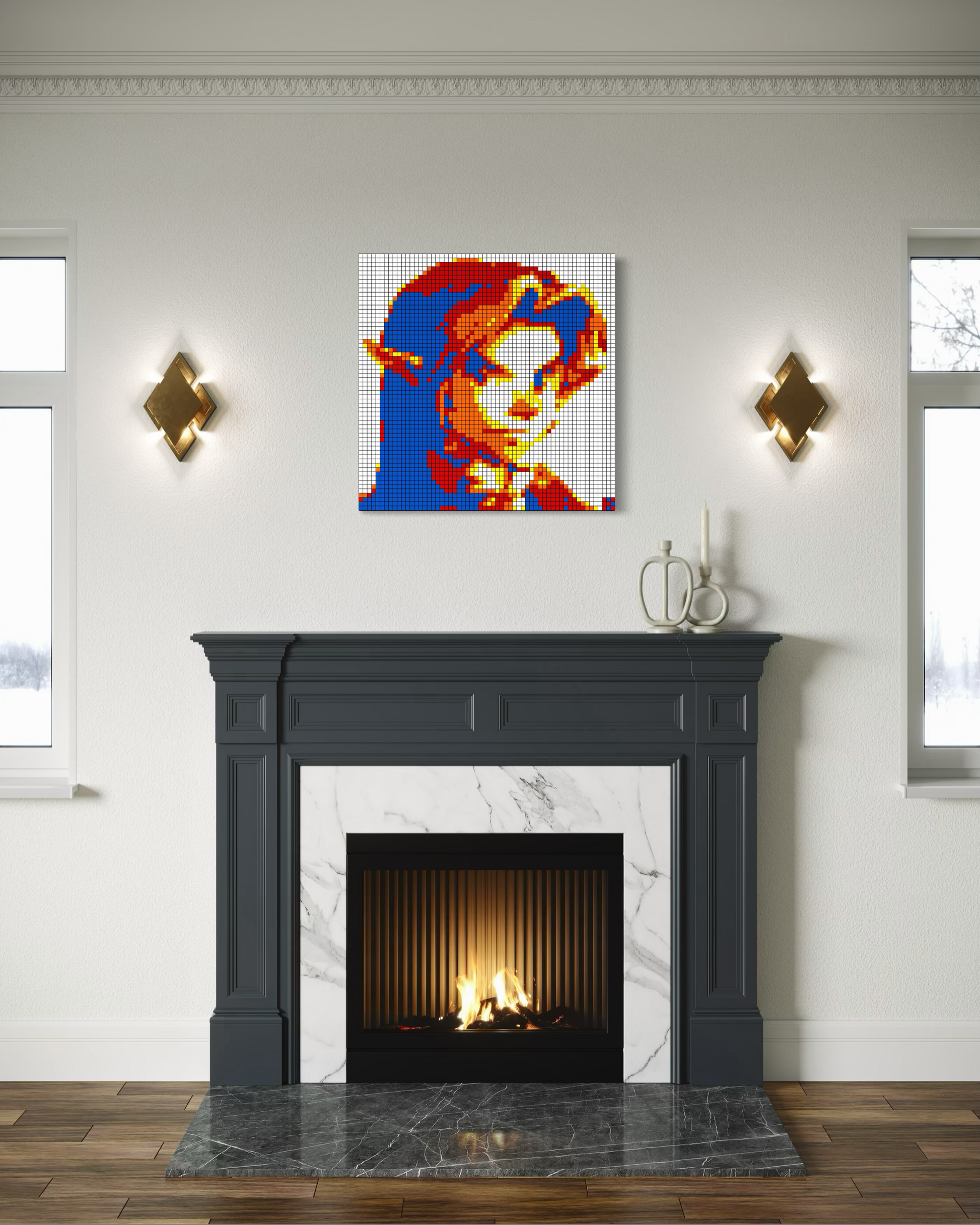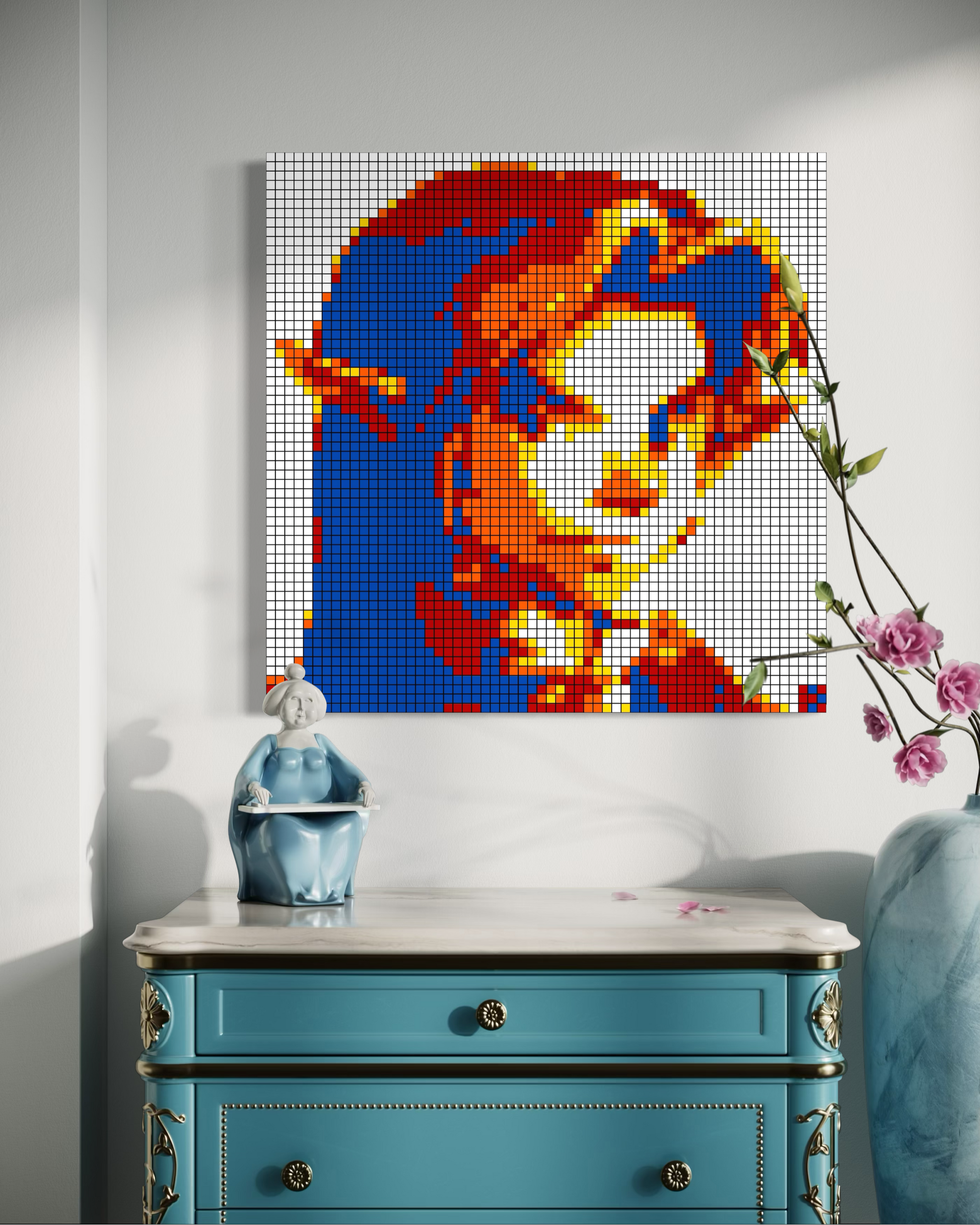 Originals: Crafted entirely from real Rubik’s Cubes, each mosaic is glued together and mounted securely to a backboard. Depending on the size, originals are also professionally framed for added stability and presentation. These one-of-a-kind works are the true embodiment of cube art — no two originals are ever the same.