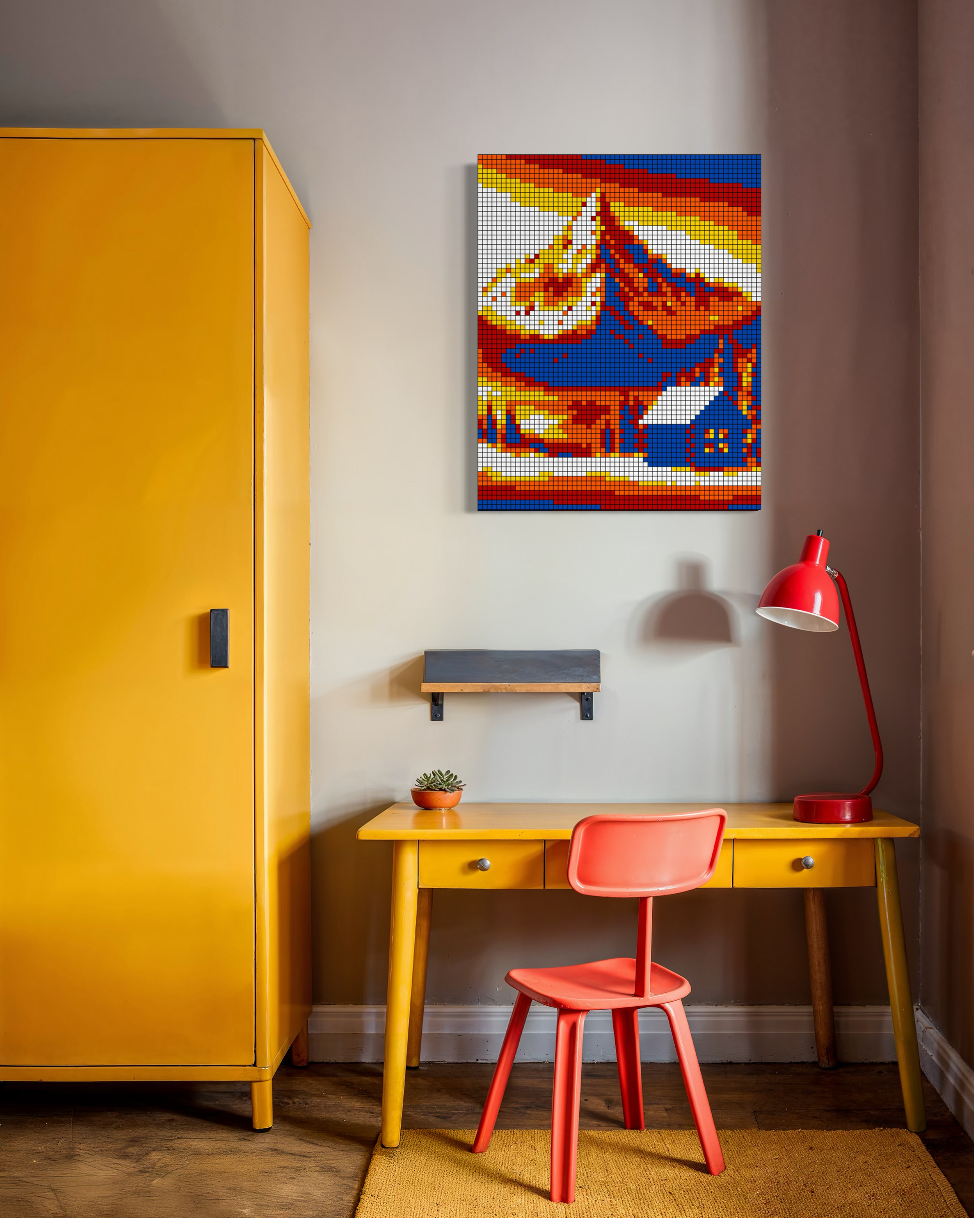 Original: Crafted entirely from real Rubik’s Cubes, each mosaic is glued together and mounted securely to a backboard. Depending on the size, some originals are also professionally framed for added stability and presentation. These one-of-a-kind works are the true embodiment of cube art — no two originals are ever the same.