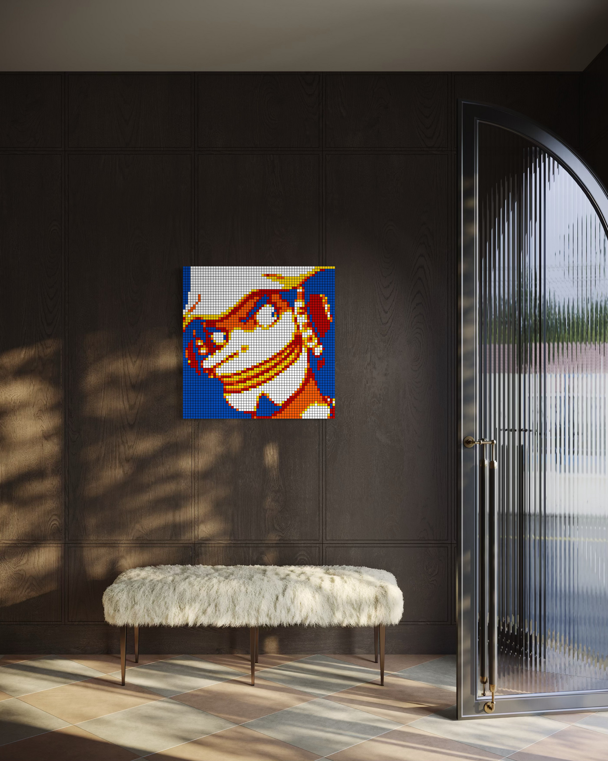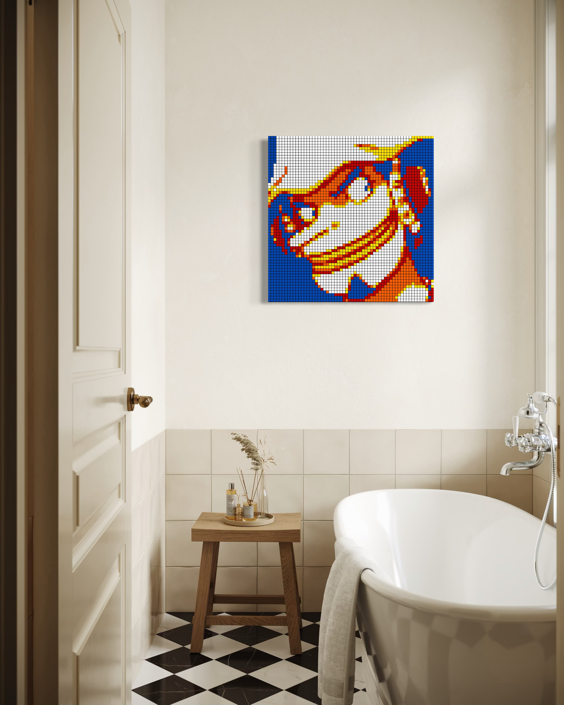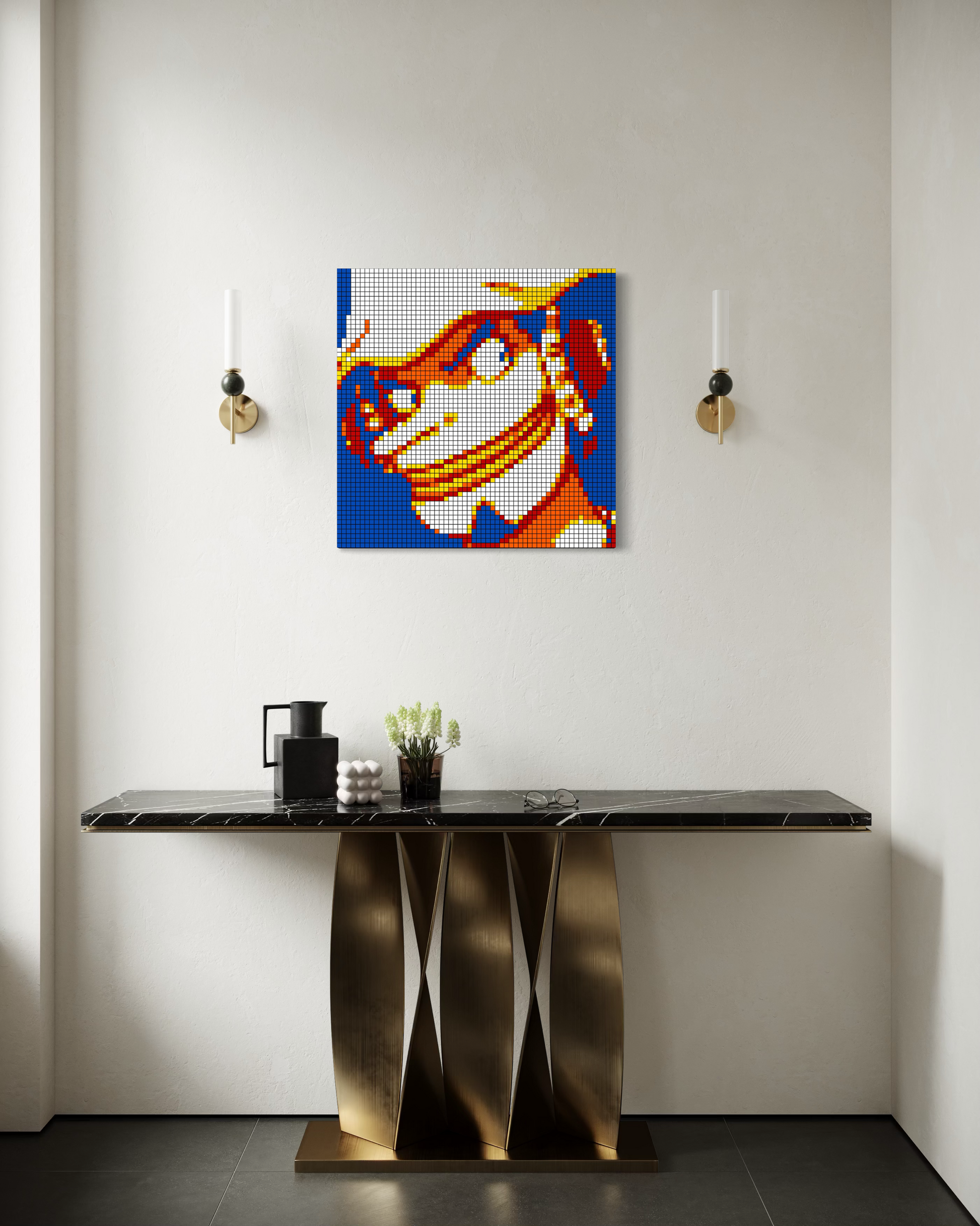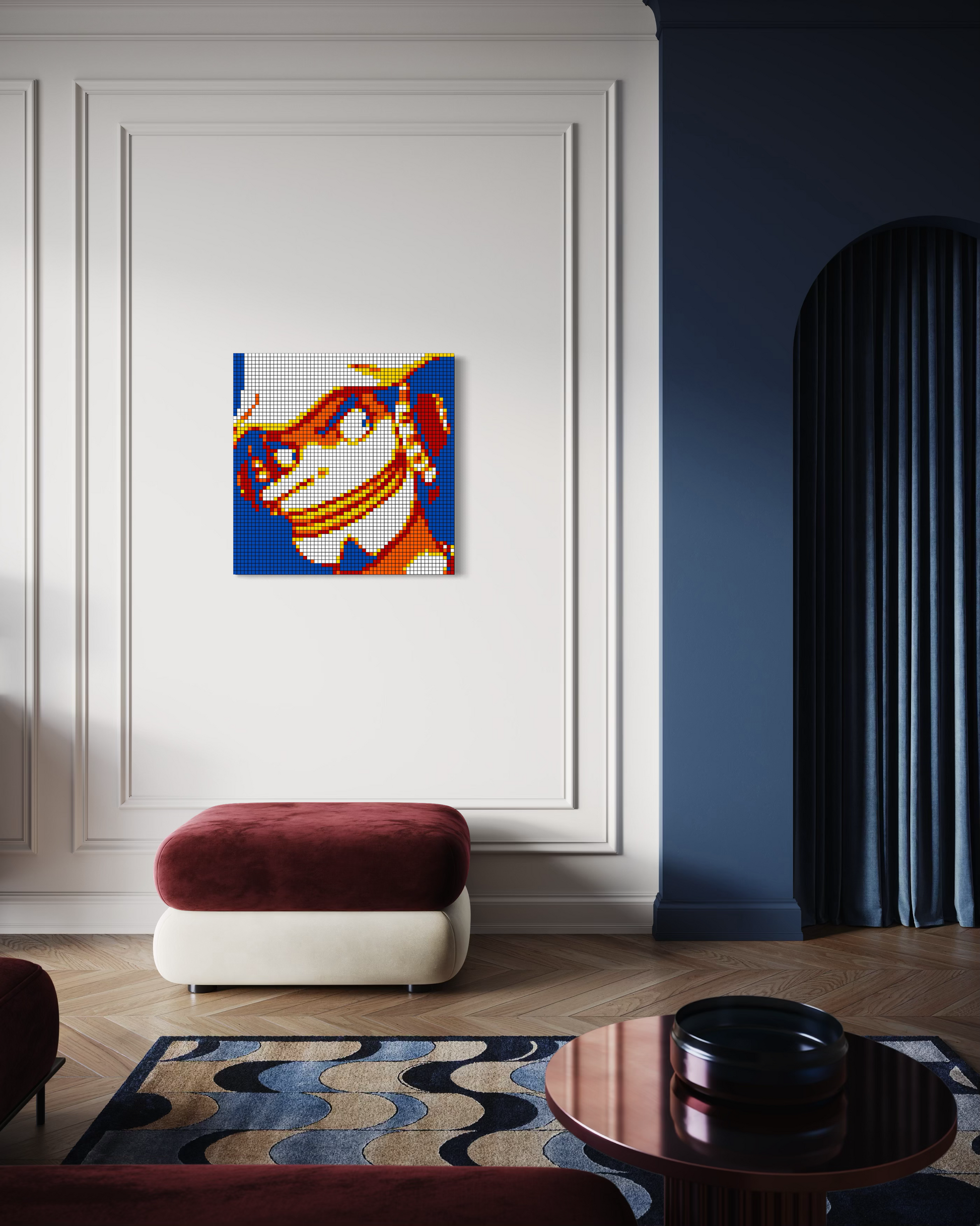 Originals: Crafted entirely from real Rubik’s Cubes, each mosaic is glued together and mounted securely to a backboard. Depending on the size, originals are also professionally framed for added stability and presentation. These one-of-a-kind works are the true embodiment of cube art — no two originals are ever the same.